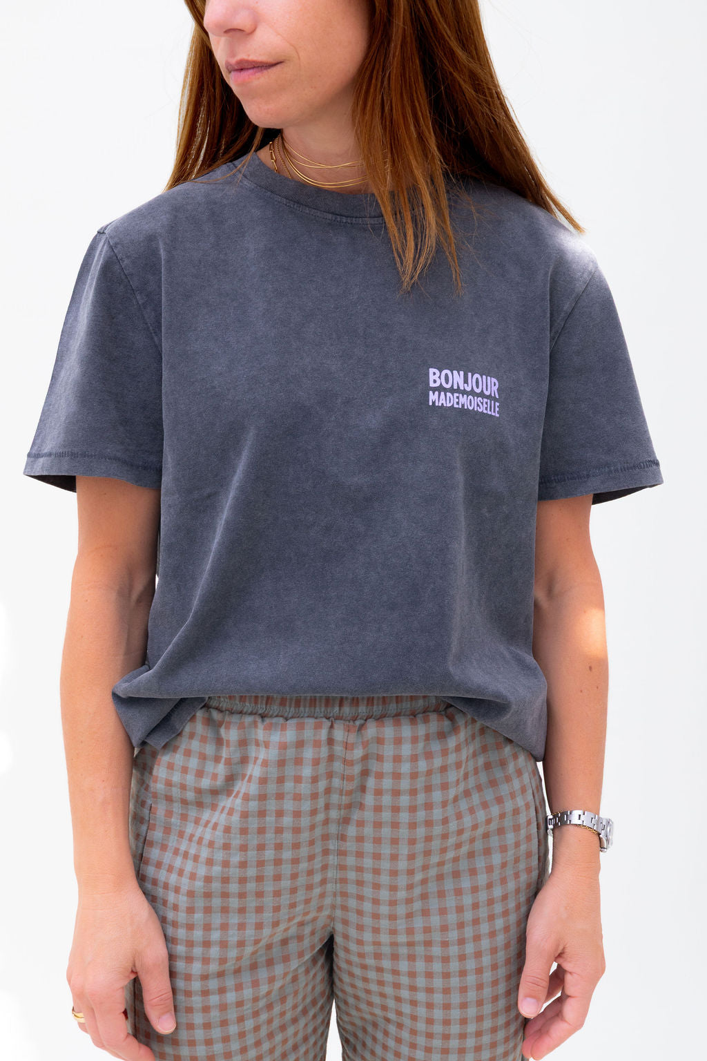 La camiseta regular de mujer Bonjour Mademoiselle combina sencillez y estilo en una prenda versátil para el día a día. Confeccionada en un tejido suave y cómodo, presenta un fit regular que favorece sin ajustar. El print “Bonjour Mademoiselle” destaca como el elemento protagonista, aportando un toque chic, femenino y lleno de personalidad. Perfecta para crear looks casuales con un guiño elegante y moderno.