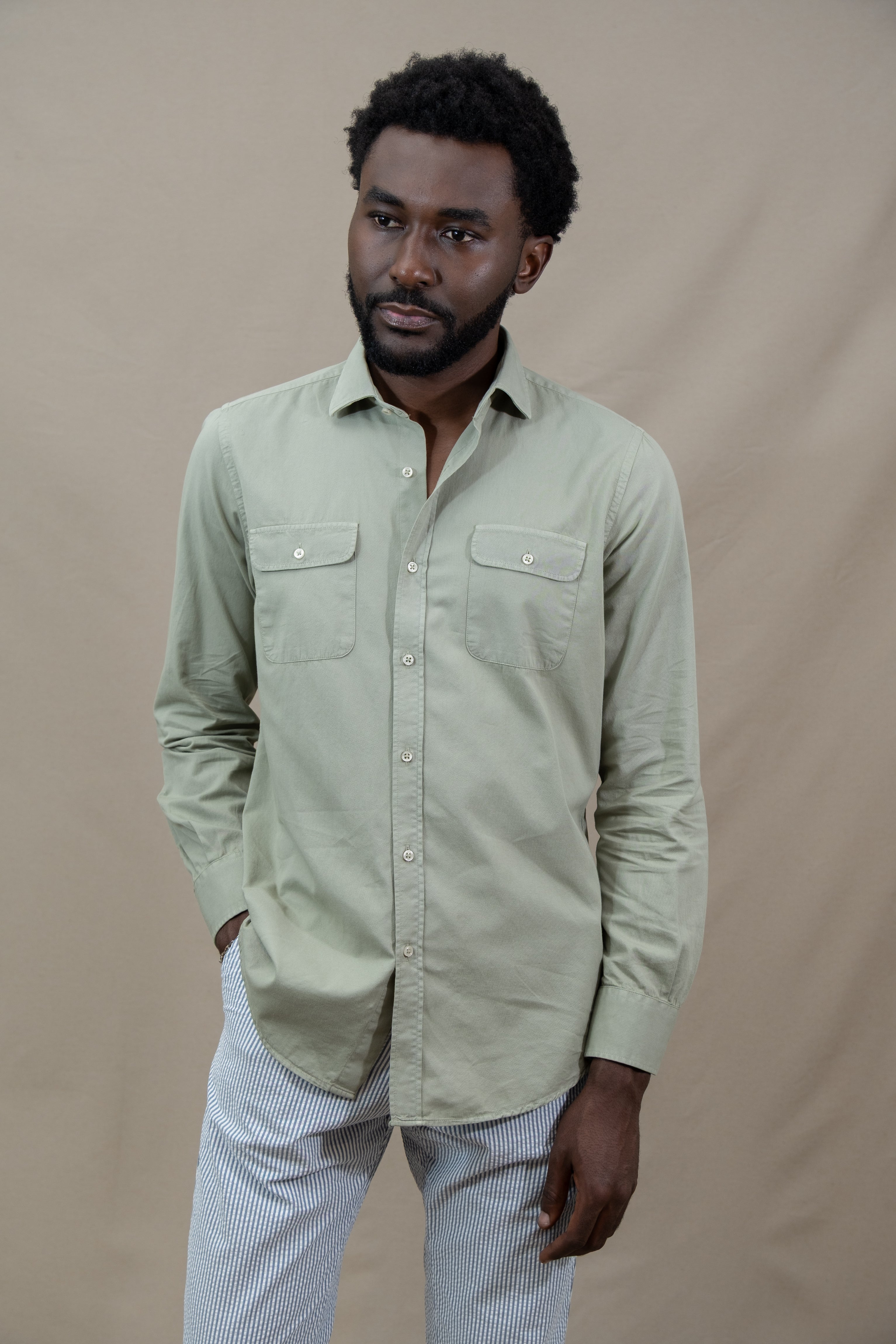 Cuenta con dos bolsillos frontales de estilo utilitario que suman funcionalidad y un toque desenfadado al look. Fabricada en España con atención al detalle y materiales de calidad, es una prenda versátil que se adapta a cualquier ocasión con un aire casual y elegante.