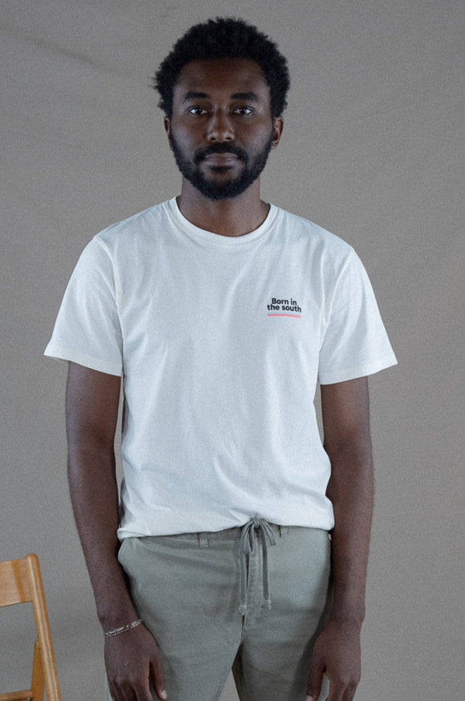 Meet our Born in the South T-shirt! Made from 100% soft cotton, it offers comfort and unmistakable style. Its "Born in the South" print adds an authentic touch, while its versatile design makes it an ideal choice for any occasion. Designed in Spain and manufactured in Portugal, this T-shirt fuses European quality with a unique character. Ready to stand out in style? Make the Born in the South T-shirt yours and elevate your look!