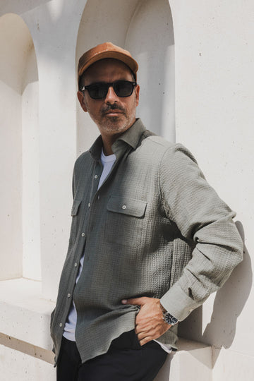 €85.00 EURRenueva tu look con esta camisa para hombre de textura seersucker, ligera, cómoda y perfecta para el calor. Su tejido arrugado natural permite una excelente ventilación, evita el planchado y ofrece un estilo casual con personalidad. Incluye dos bolsillos frontales funcionales, ideales para un toque utilitario y moderno. Su corte relajado brinda libertad de movimiento, haciéndola ideal tanto para el día a día como para escapadas de fin de semana. Combínala con jeans, pantalones chinos o bermudas. Una prenda versátil, fresca y atemporal que no puede faltar en tu armario.