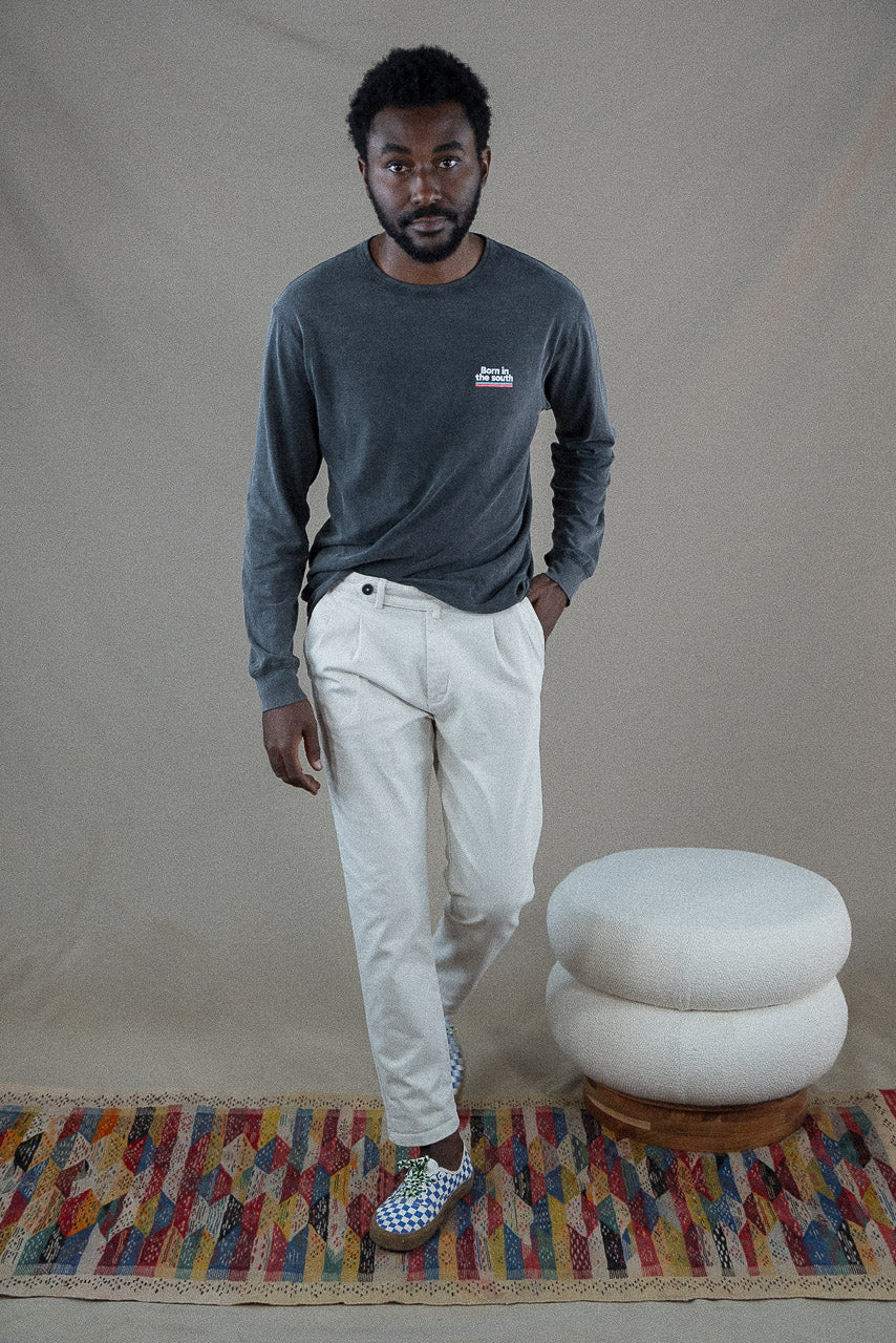 Hemos transformado la clásica camiseta interior en un básico elegante y versátil para tu armario. Con un print delantero y trasero de "Born in the South", esta camiseta de flamé de algodón orgánico no solo ofrece una suavidad inigualable, sino que también añade un toque distintivo y auténtico a tu estilo.