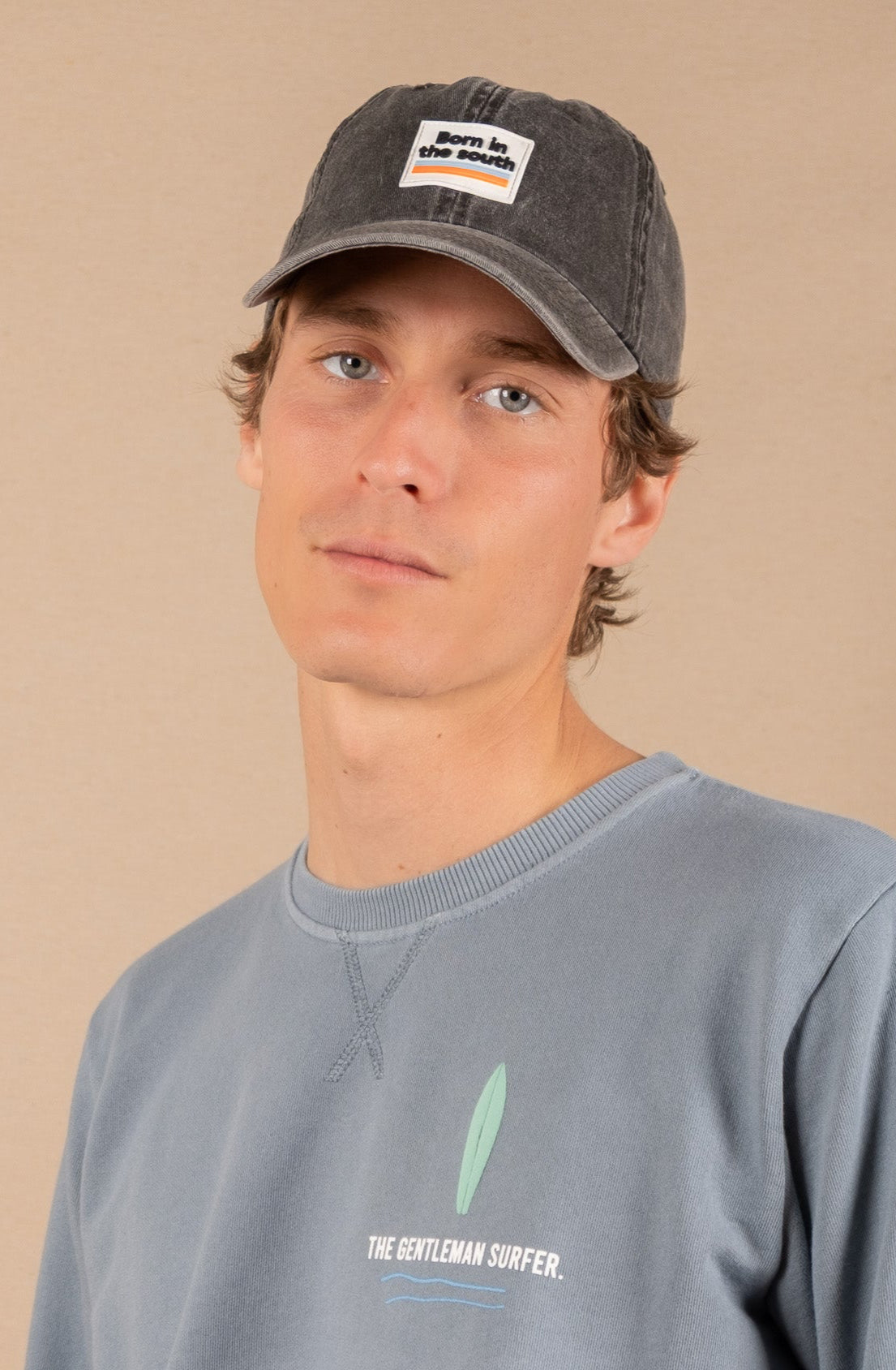 Gorra básica lavada color asfalto desgastado 100% algodón con parche 3D silicona original . Born in the south by Sam Newman. Perfecto para un outfit casual en ciudad o una tarde de pesca en el atlántico. Disponible en varios colores.