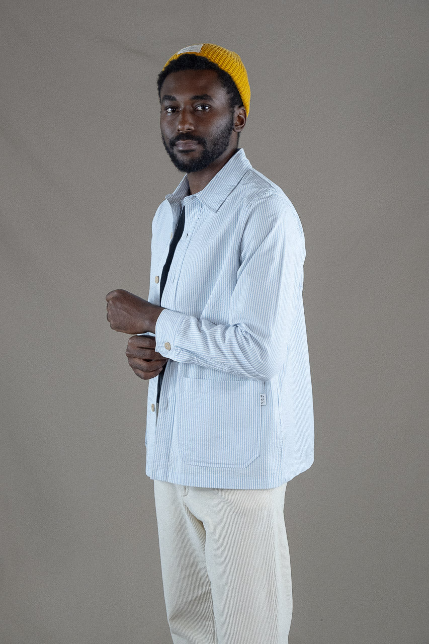 Descubre la elegancia y el confort en nuestra chaqueta de rayas en sarga. Confeccionada en España con 97% algodón y un toque de elastano, se adapta perfectamente a tu cuerpo. Su diseño sofisticado y detalles abotonados aportan un estilo único para destacar en cualquier ocasión.