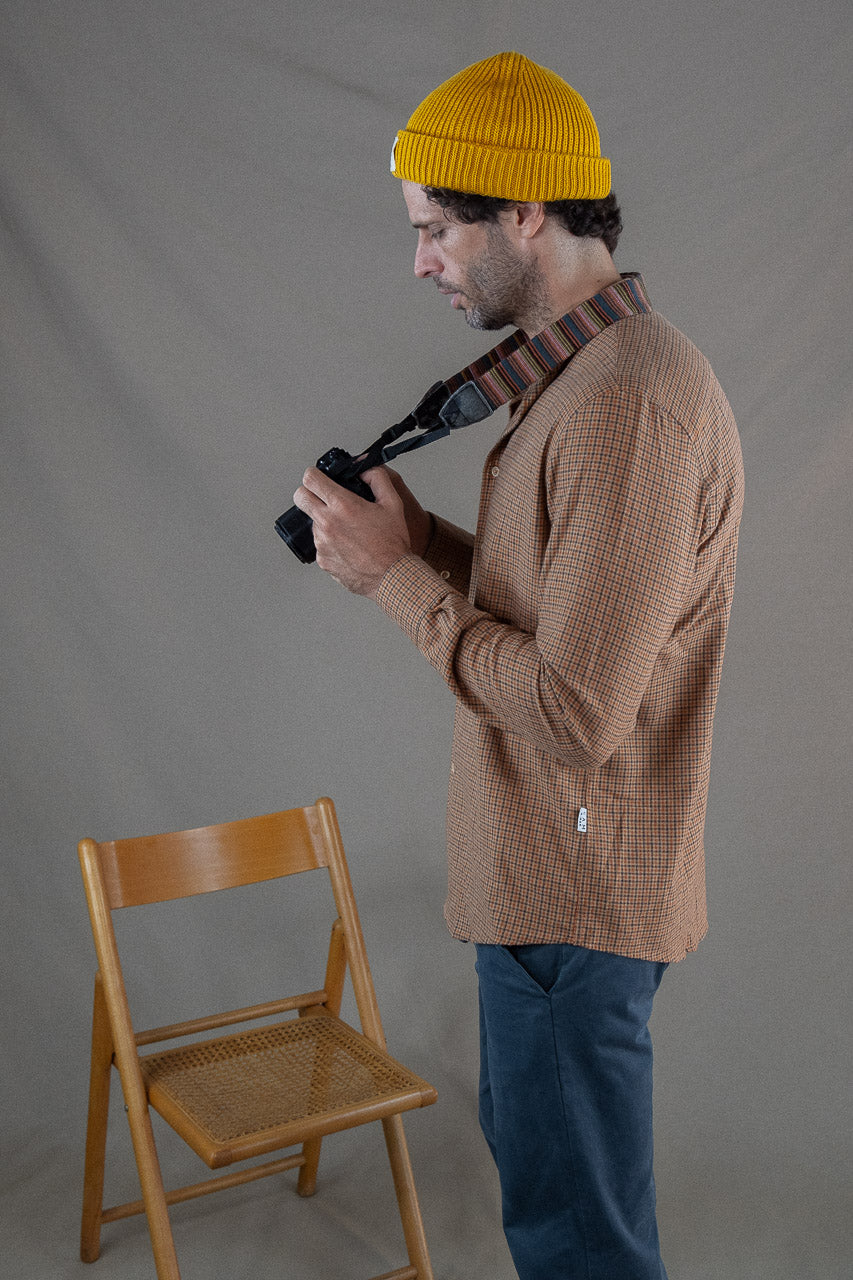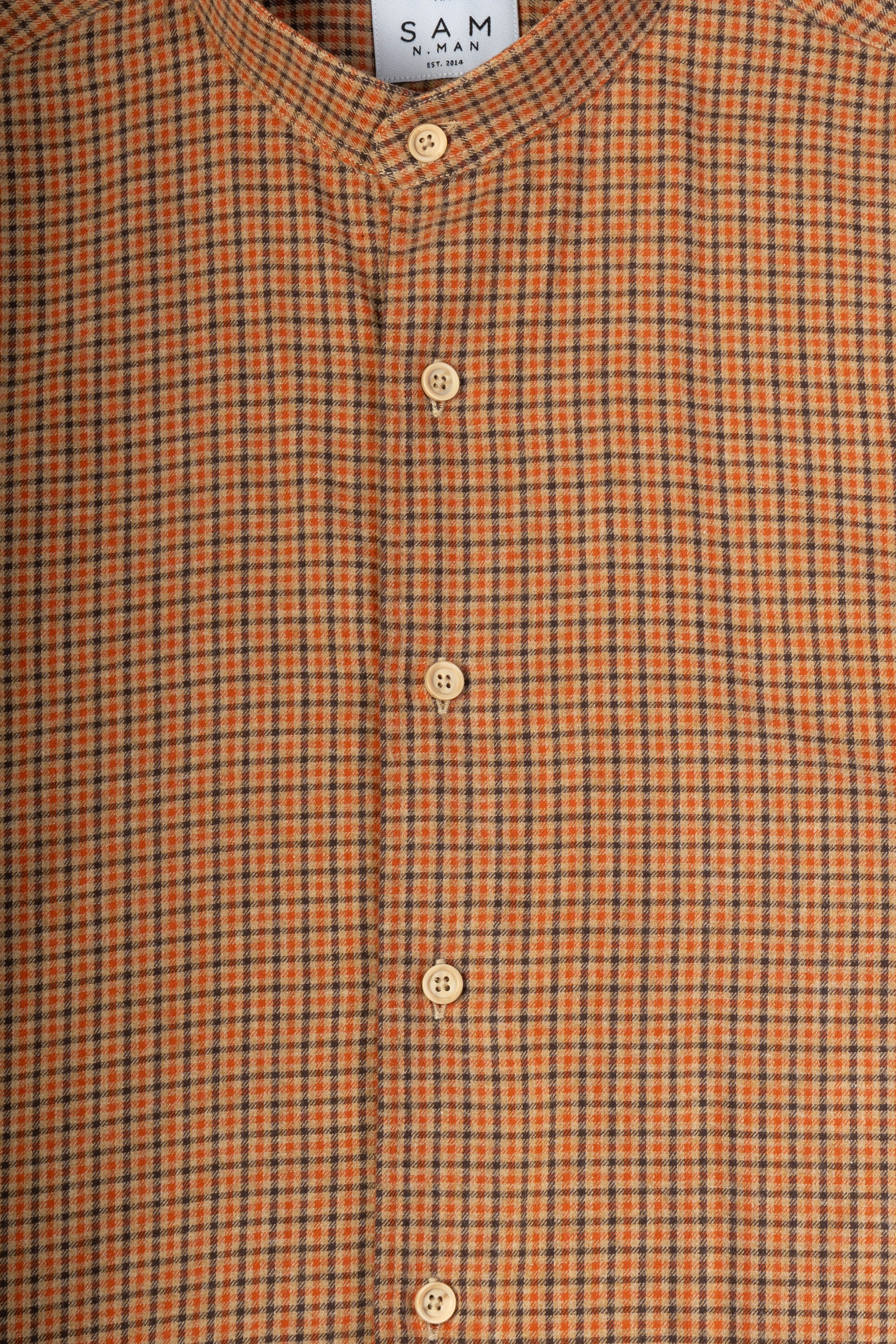 Camisa de cuello mao en suave franela, confeccionada en 100% algodón portugués. Su ajuste perfecto garantiza comodidad y estilo, agregando un toque sofisticado a cualquier look casual.