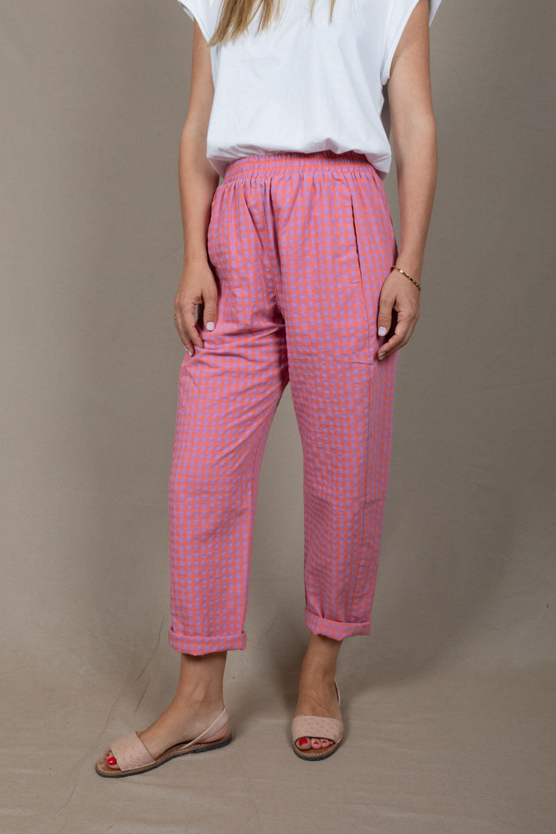 Pantalón jogger de mujer confeccionado en España con una mezcla de algodón y lino. Su tejido ligero y transpirable ofrece comodidad y estilo para cualquier ocasión. Perfecto para un look casual elegante o relajado.