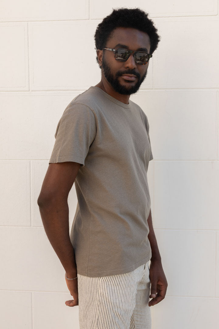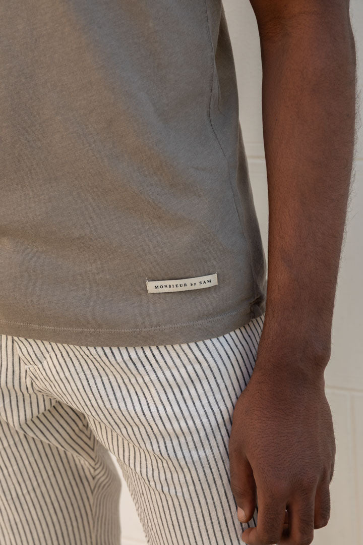 Our Monsieur T-shirt combines the lightness of linen with the softness of cotton, creating a perfect balance between comfort and sophistication. Its breathable fabric makes it the ideal companion for warm climates, withstanding high temperatures without losing its composure or poise.