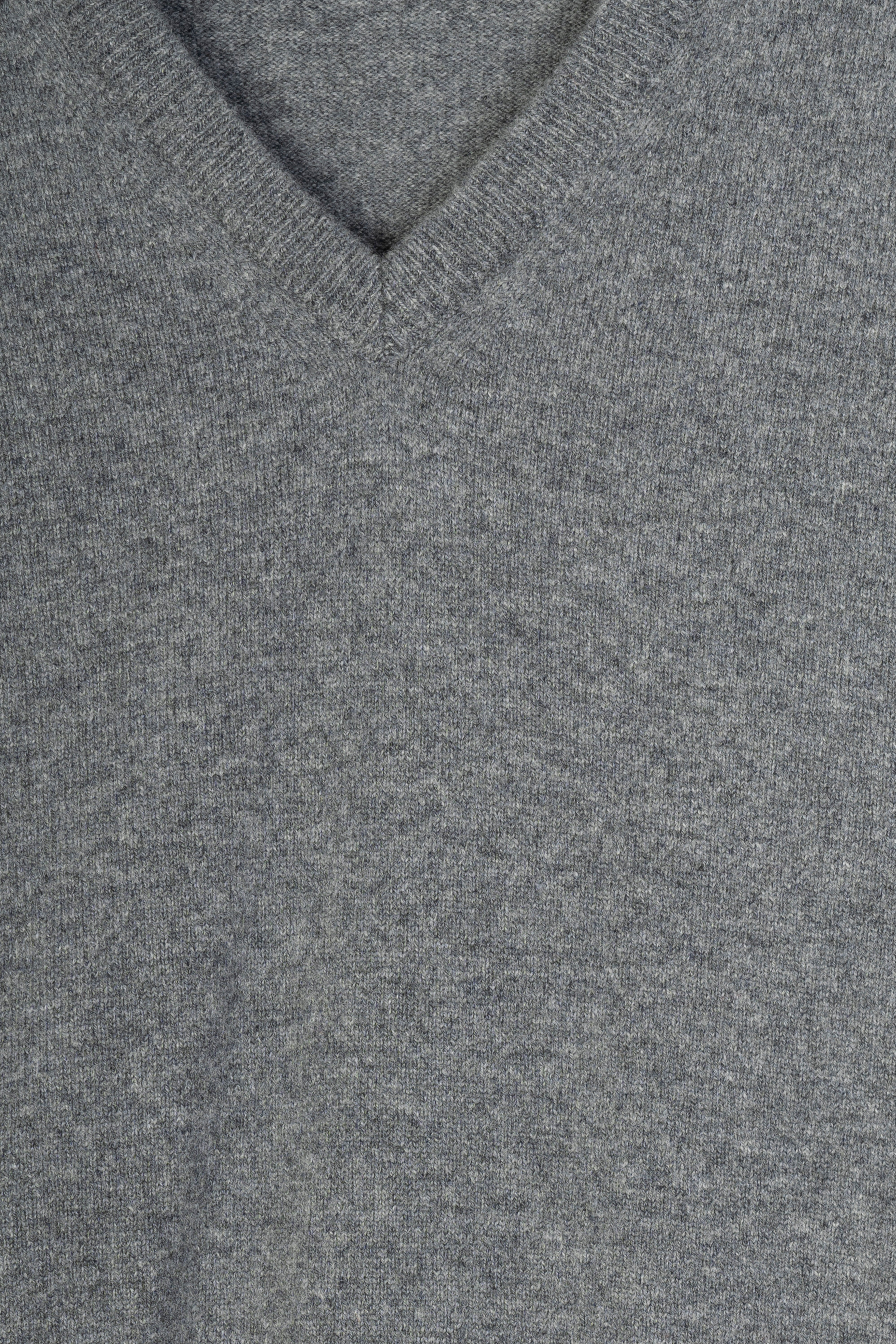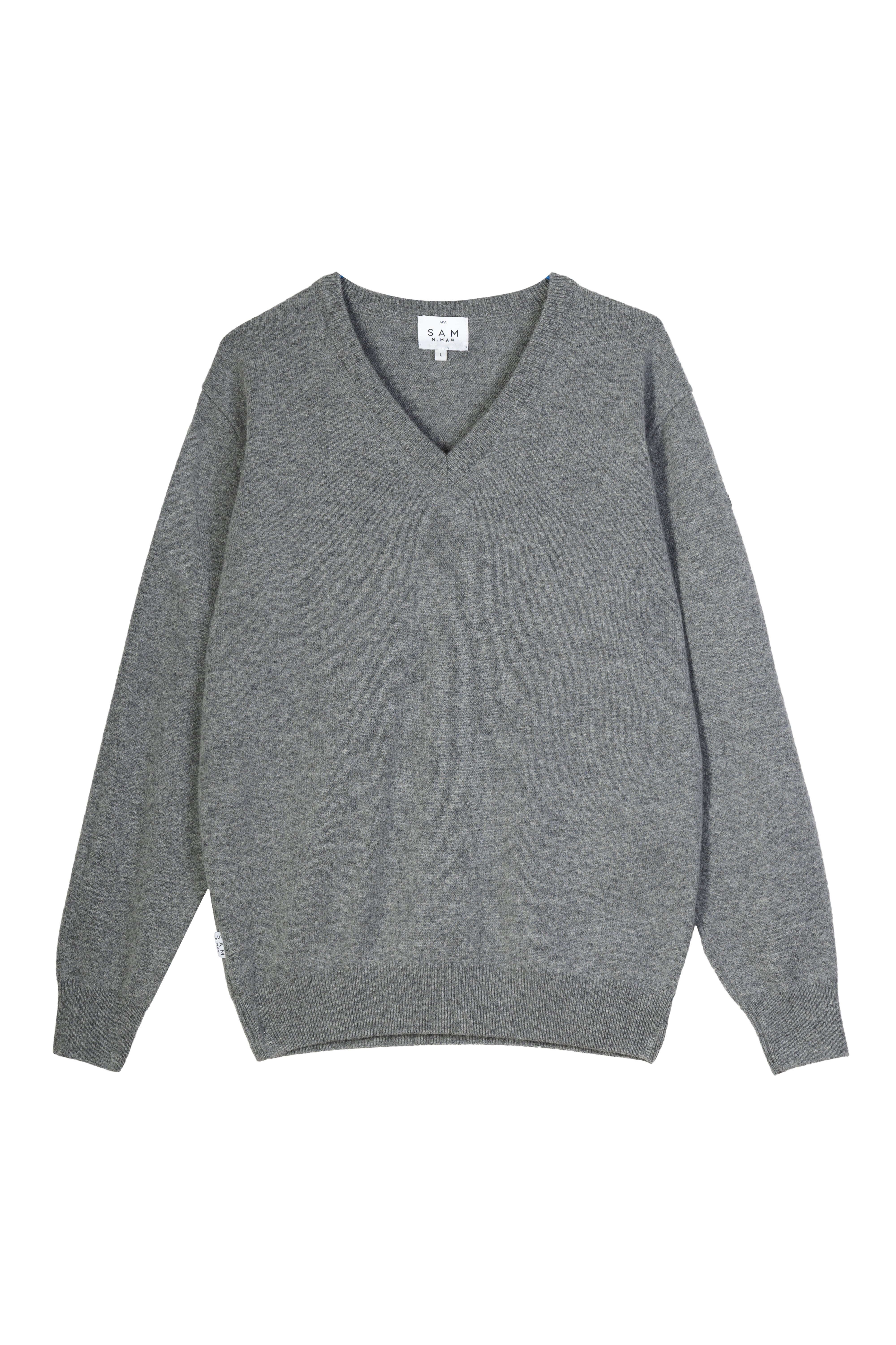 MIDDLE GREY LAMBSWOOL V-NECK JUMPER