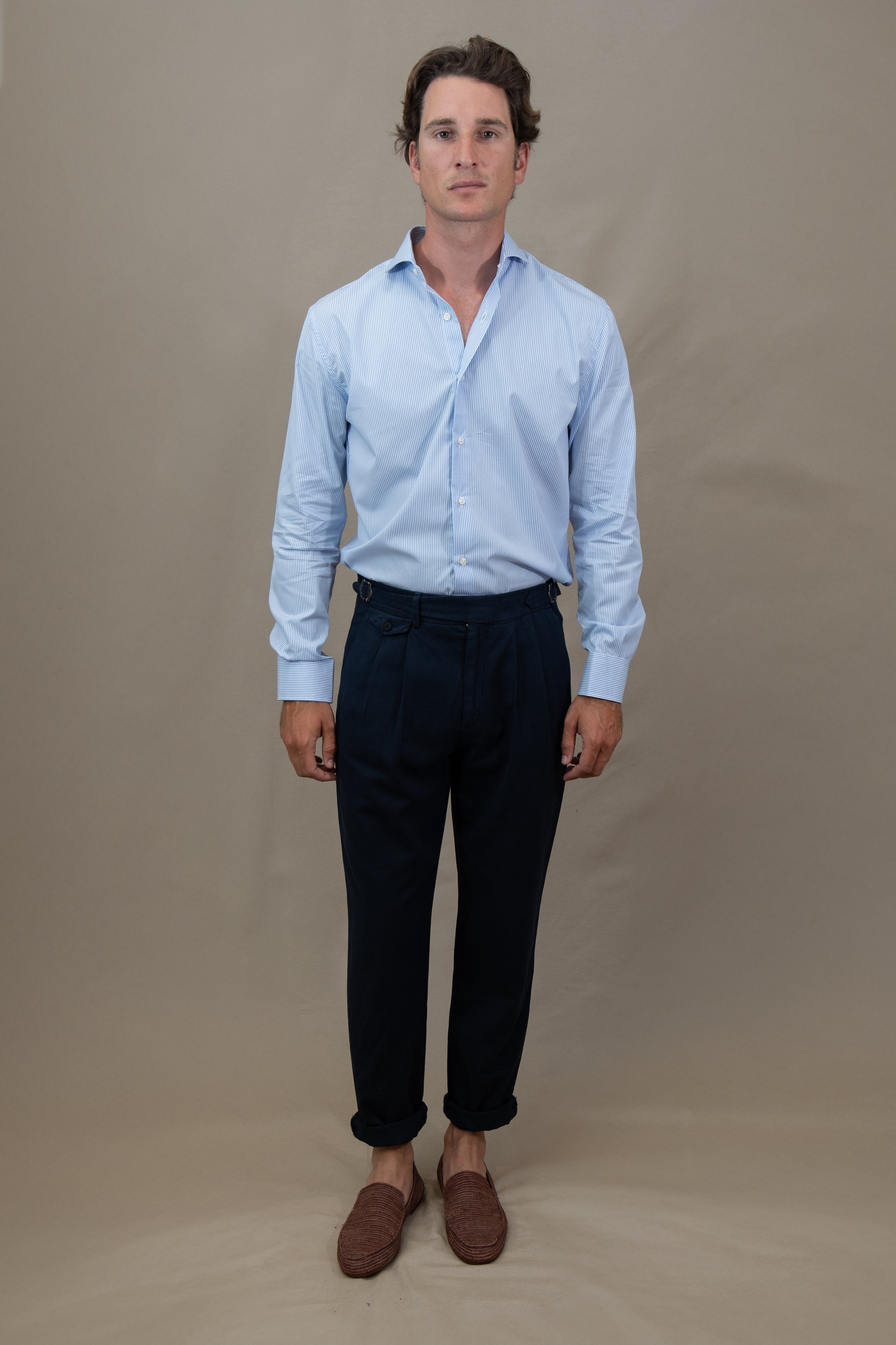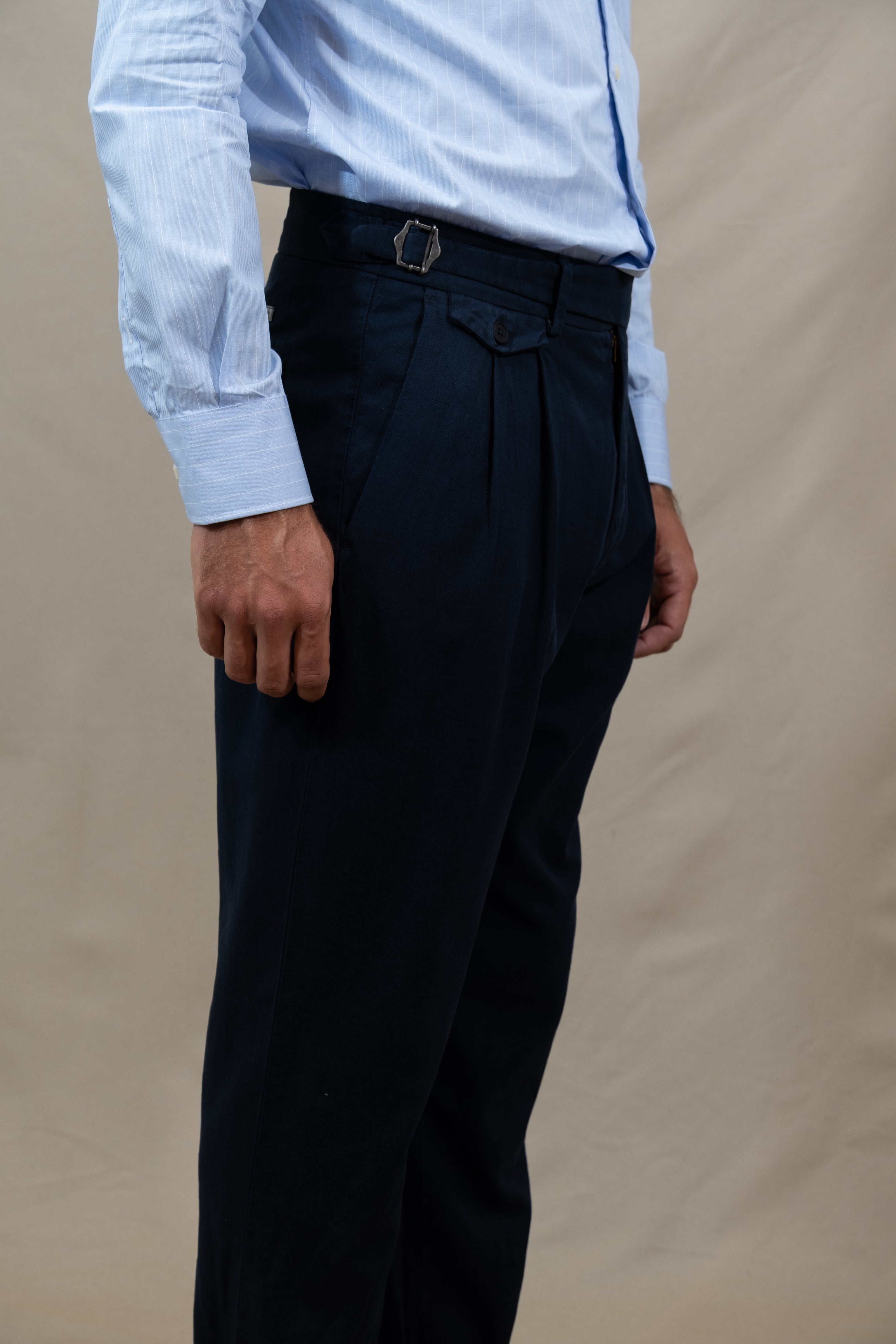 Pantalón de lino navy, ligero y fresco, perfecto para el verano. Corte relajado, cintura cómoda y caída elegante. Ideal para looks sofisticados, desde la playa hasta eventos casuales.