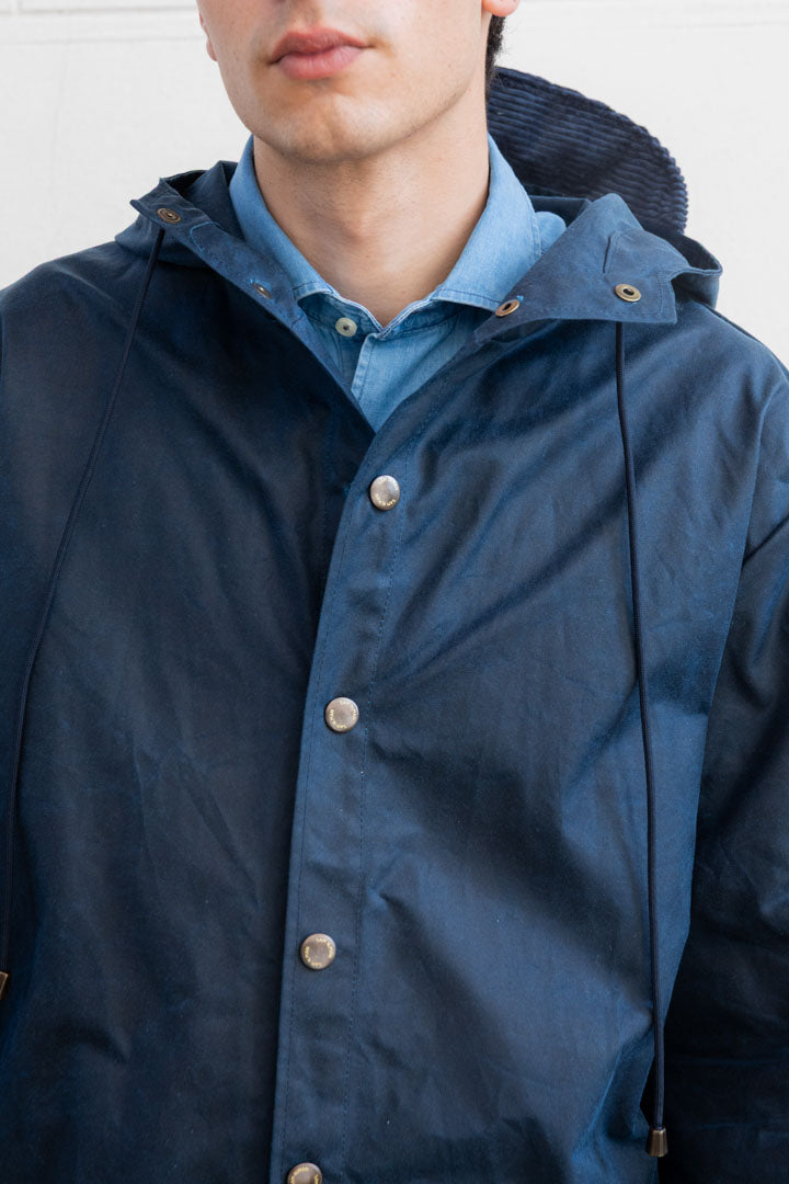The Sam rain coat features a wax-finished outer shell that offers water resistance and added durability. its structured yet comfortable design makes it ideal for transitional weather, delivering protection without compromising on style.