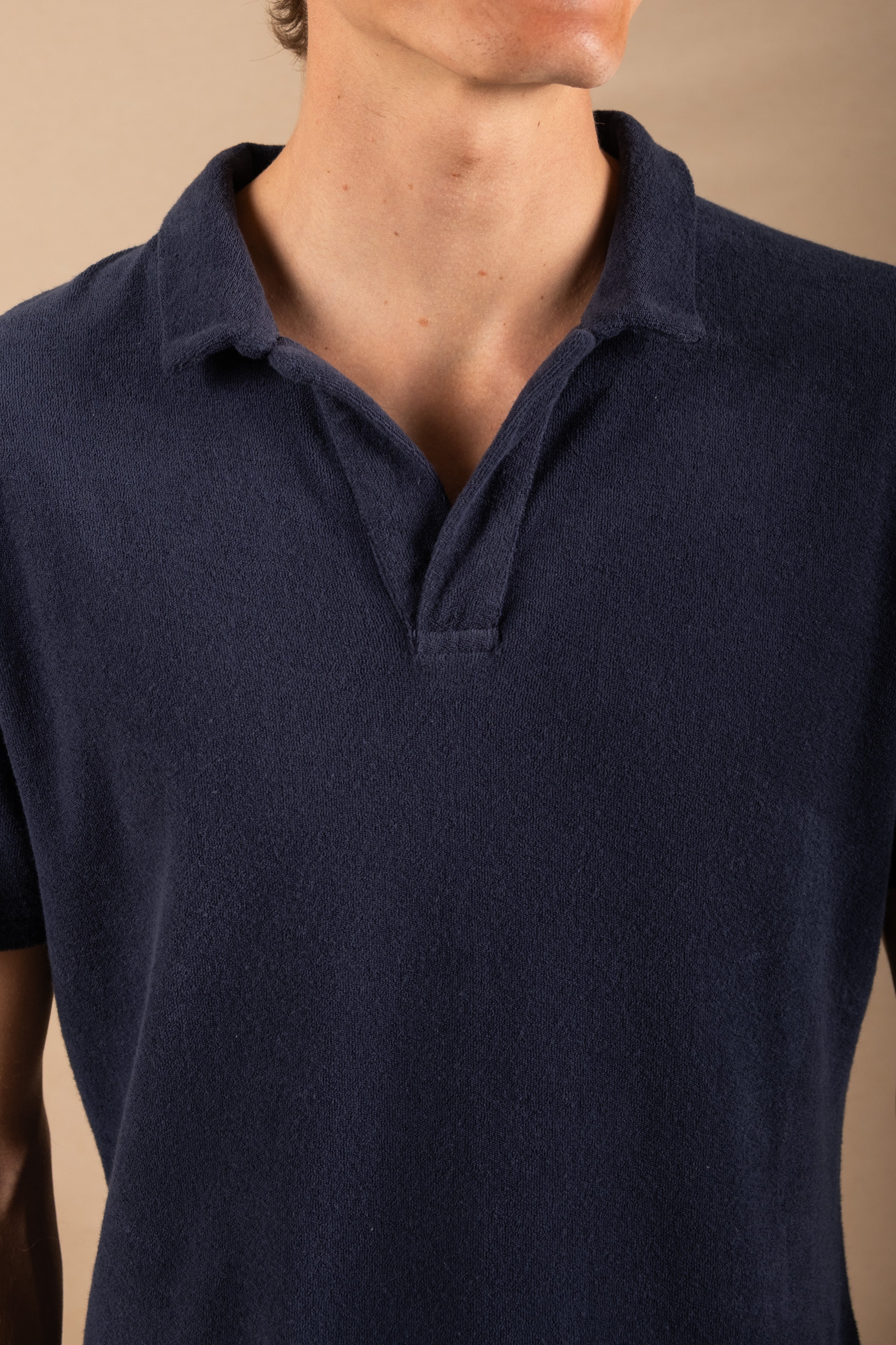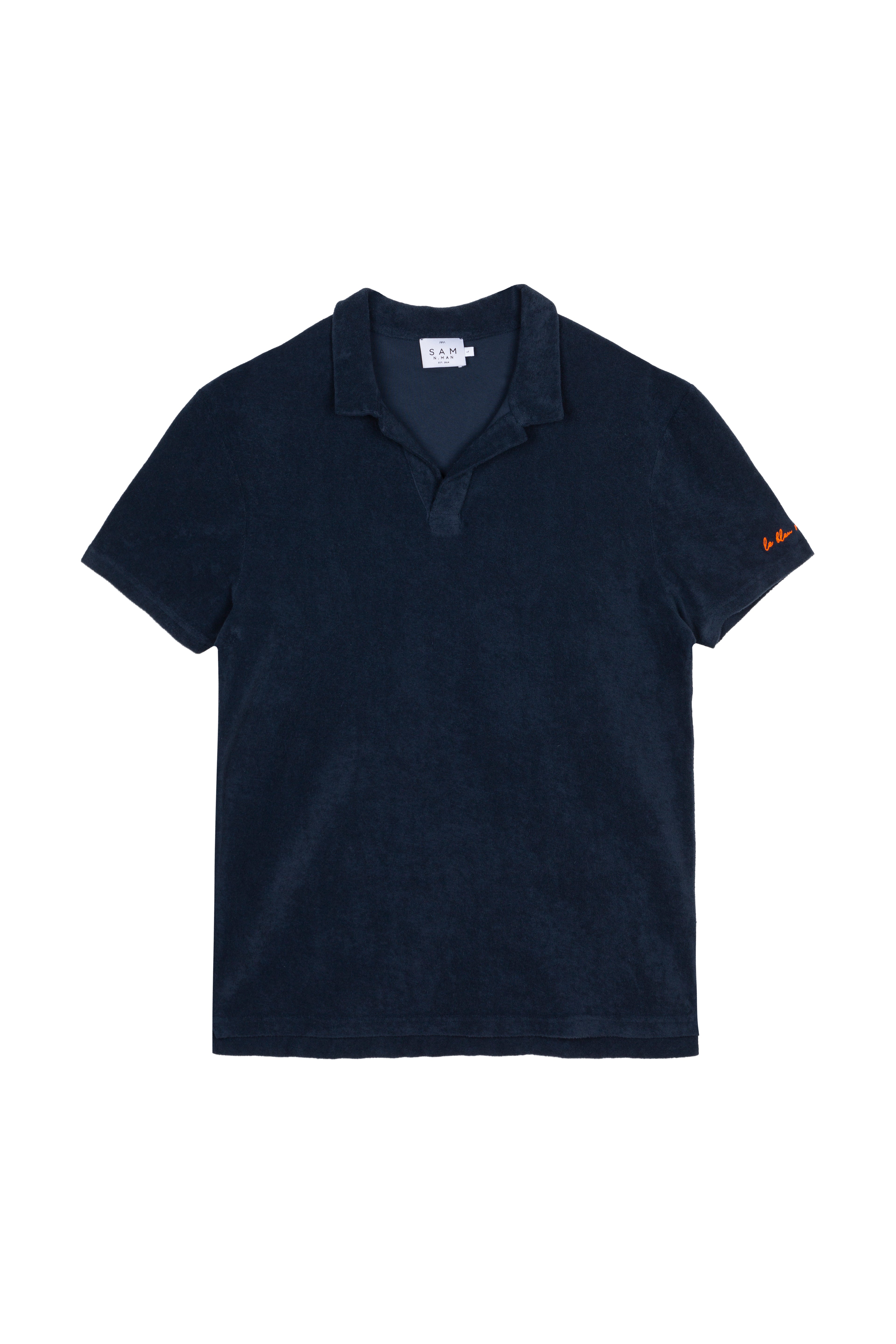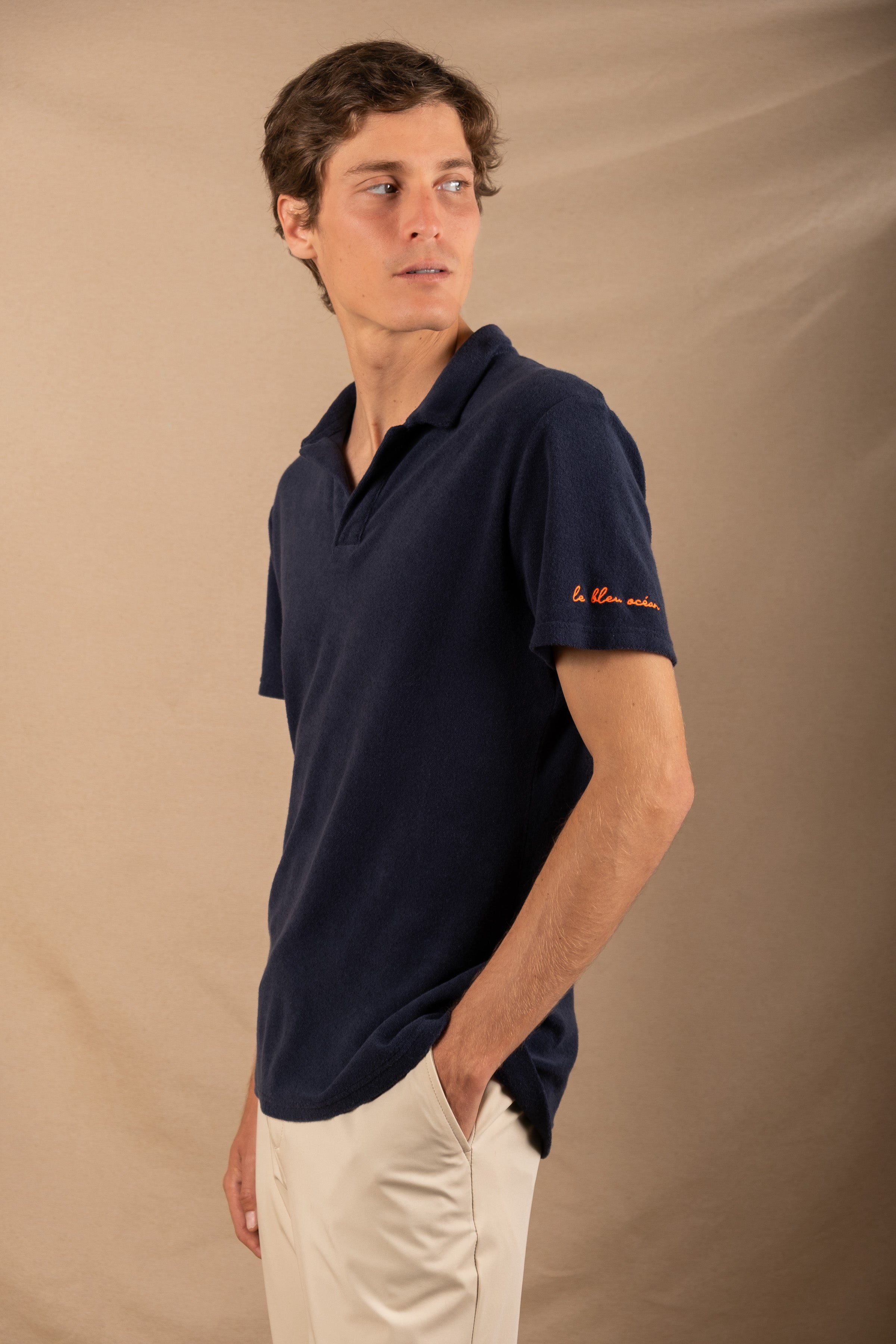 Descubre nuestro polo toalla, confeccionada en Portugal con bordado en la manga "Le Bleu Océan". Esta prenda combina comodidad y estilo con su suave tejido de rizo de algodón y detalles elegantes. Perfecta para la playa o para el día a día, añade un toque de sofisticación relajada a tu armario con esta pieza única.