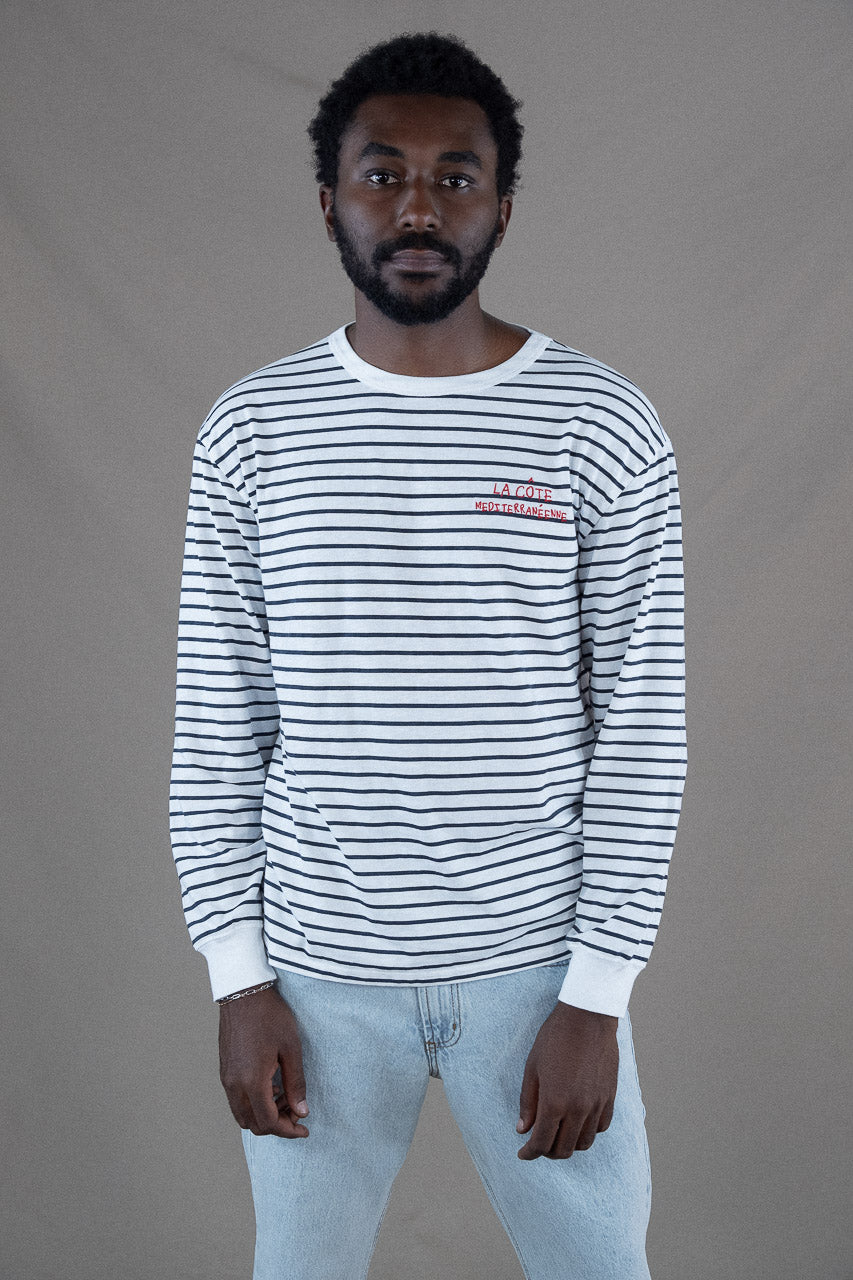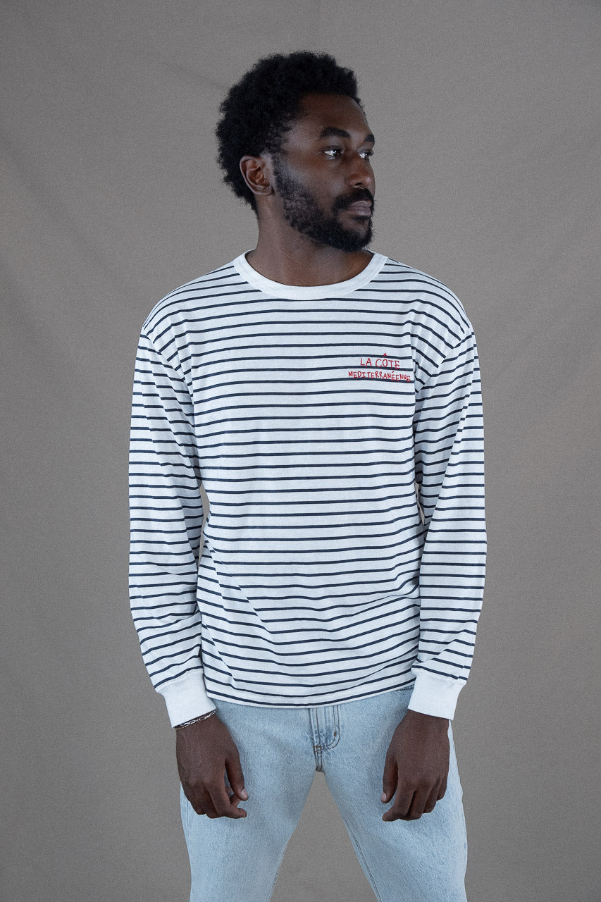 WHITE/NAVY LA CÔTE LONG SLEEVES T-SHIRT