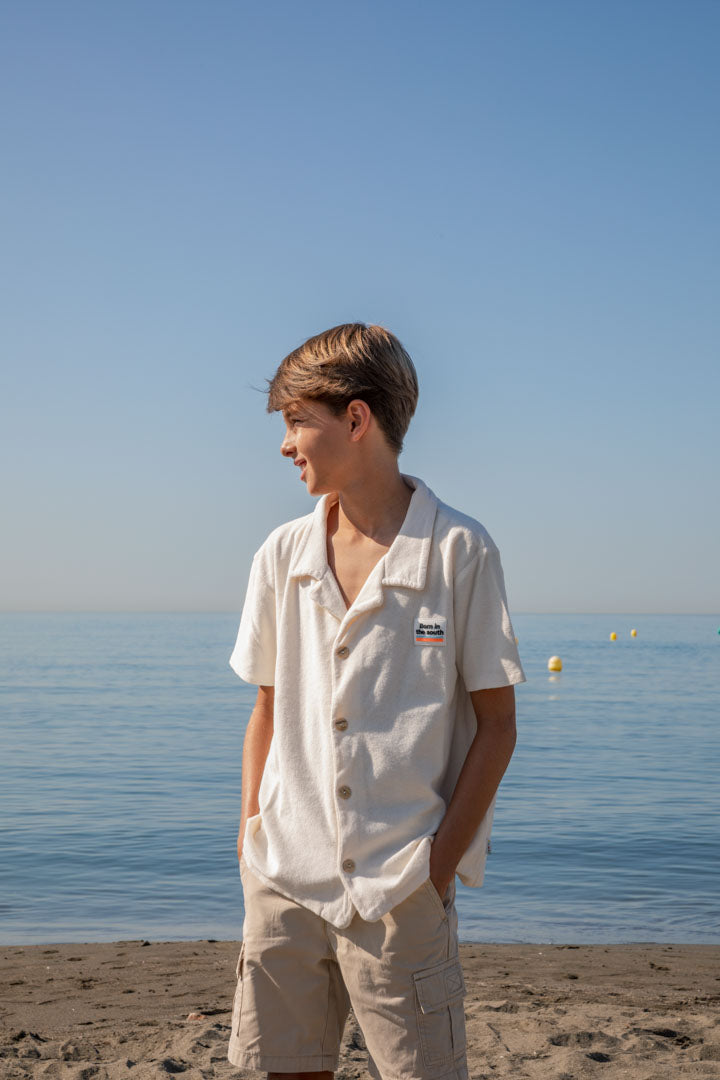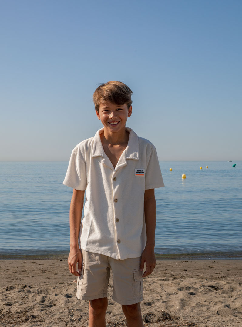 Haz que tu pequeño se destaque con nuestra camisa cuello hawaiano estilo toalla con Born in the south. Perfecta para días de playa o aventuras bajo el sol, esta camisa combina frescura y comodidad con un toque de diversión. Fabricada con materiales de alta calidad para durabilidad y confort.