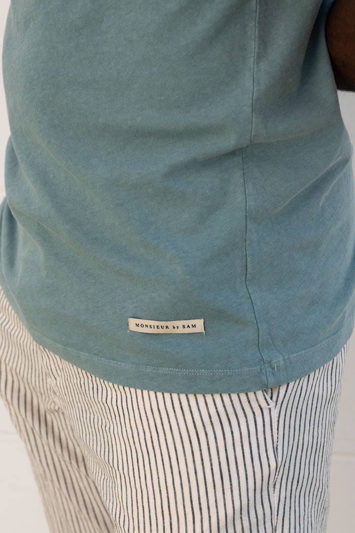 Our Monsieur T-shirt combines the lightness of linen with the softness of cotton, creating a perfect balance between comfort and sophistication. Its breathable fabric makes it the ideal companion for warm climates, withstanding high temperatures without losing its composure or poise.