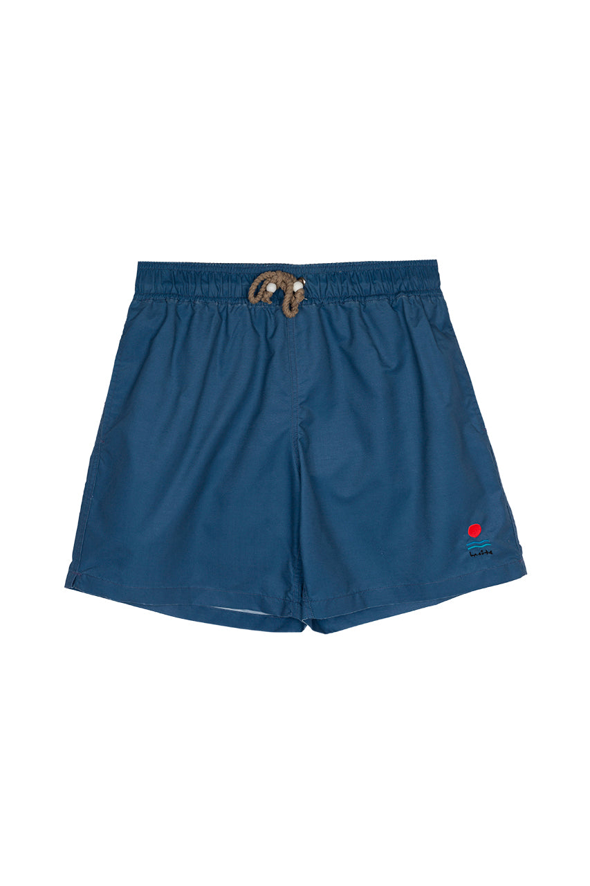 Traje de baño para hombre con cintura fija y ajuste con cordón. Tejido confeccionado 100% en poliéster reciclado para facilitar su secado siguiendo el principio fundamental al respeto por el medio ambiente.