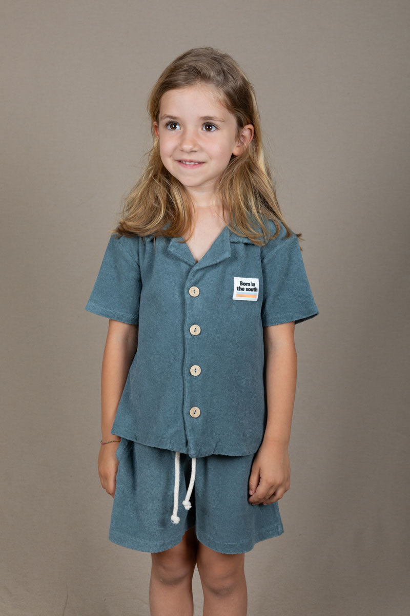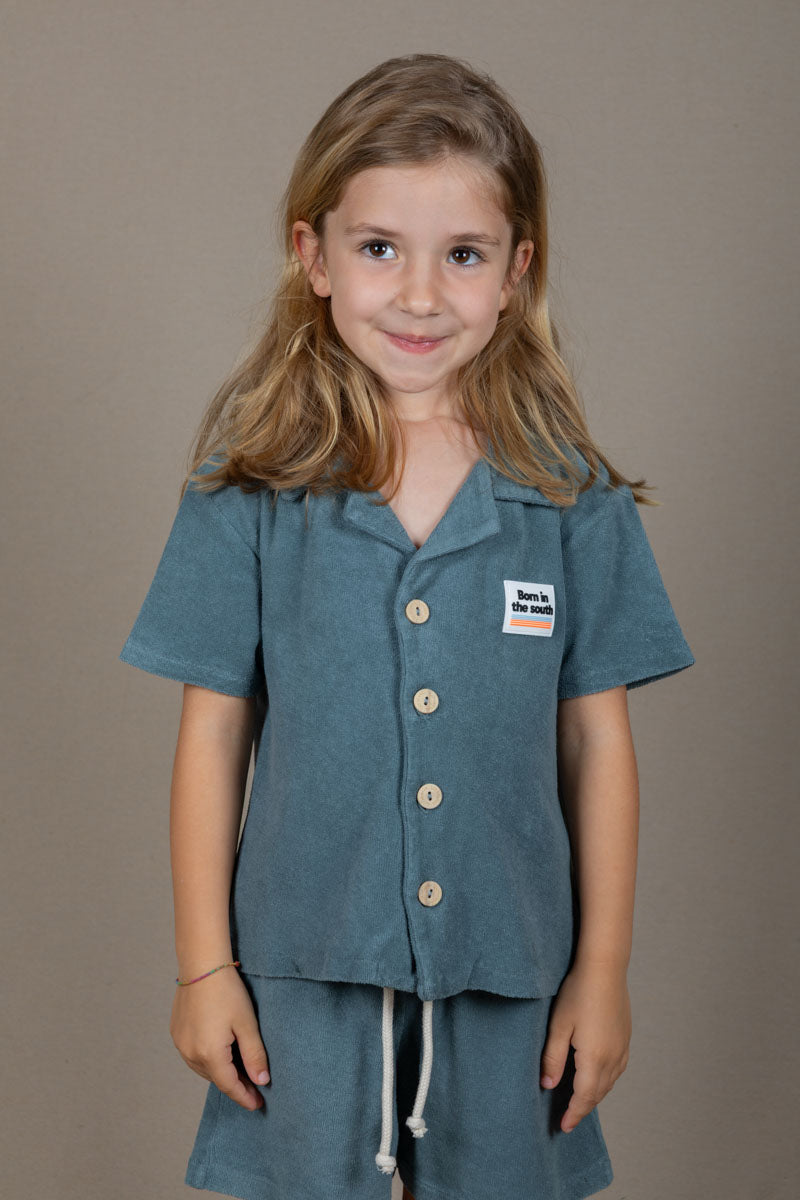 DEEP BLUE BORN IN THE SOUTH KIDS TOWEL SHIRT