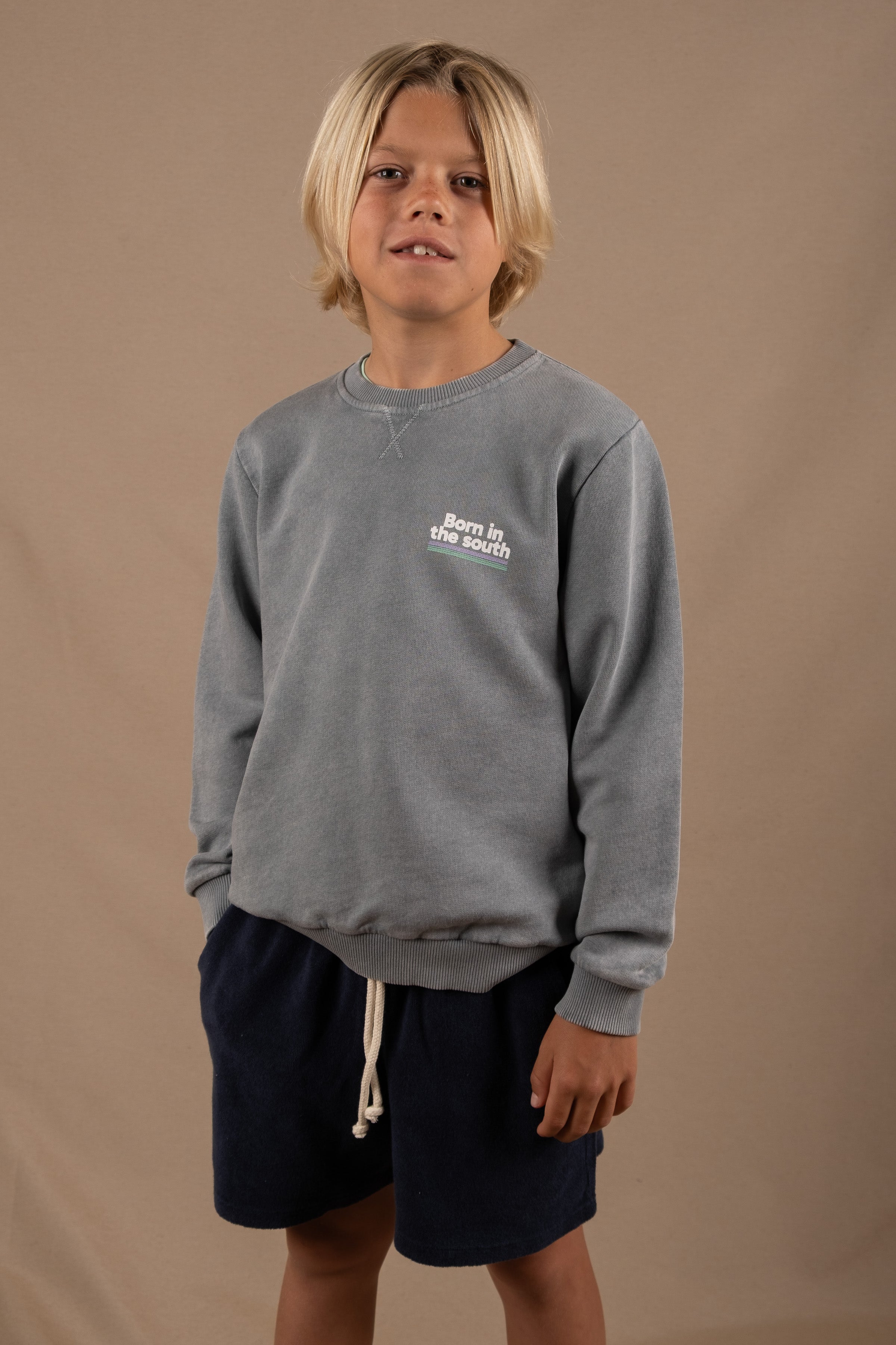 LIGHT GREY BORN IN THE SOUTH KIDS SWEATSHIRT