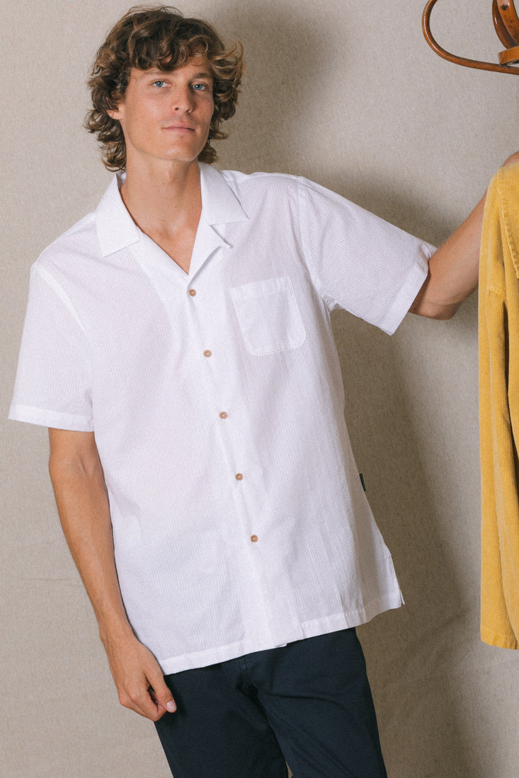 Camisa de manga corta con patrón relajado, perfecta para irte de vacaciones. Confeccionado en 100% algodón para ganar transpirabilidad y durabilidad en la prenda.